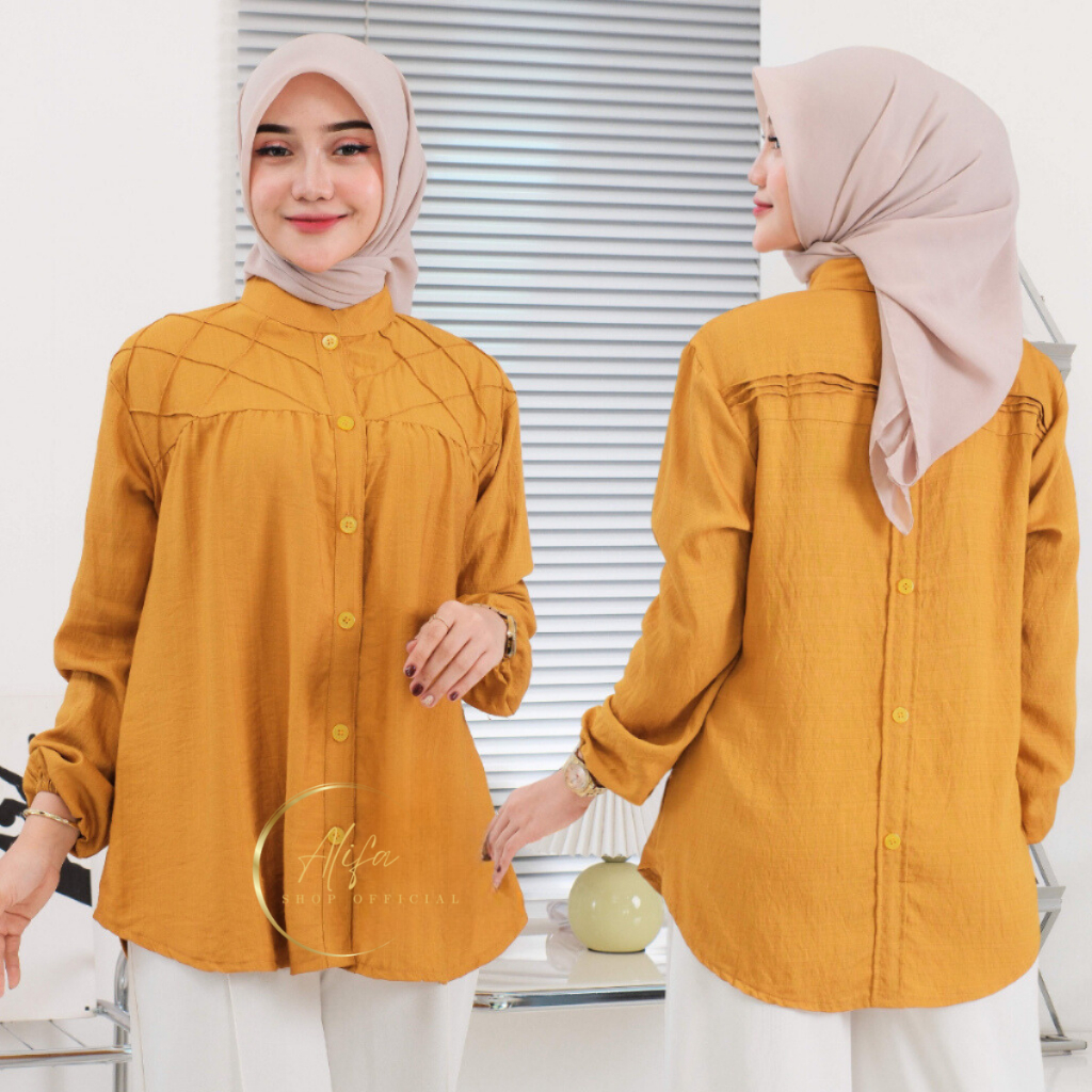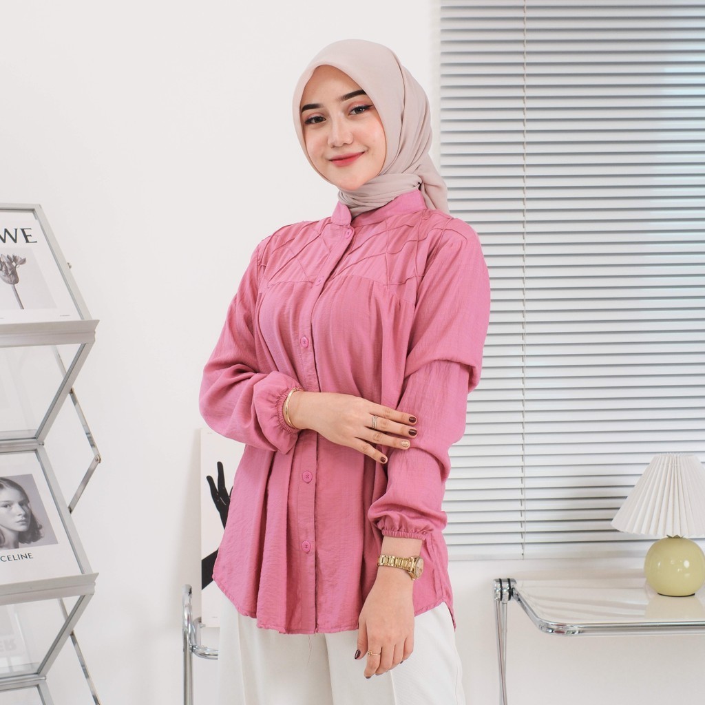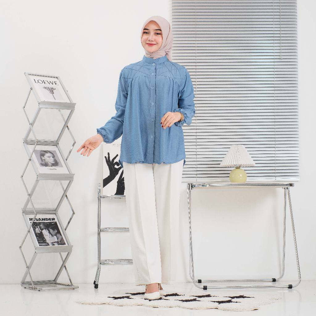 (Gratis Ongkir) Laura Shirt Atasan Kemeja Wanita Oversize Polo Linen LD 120