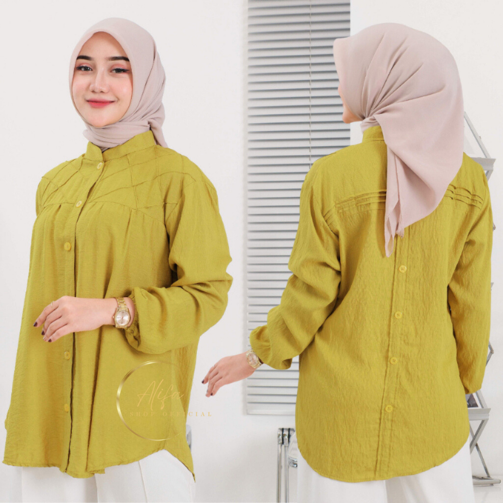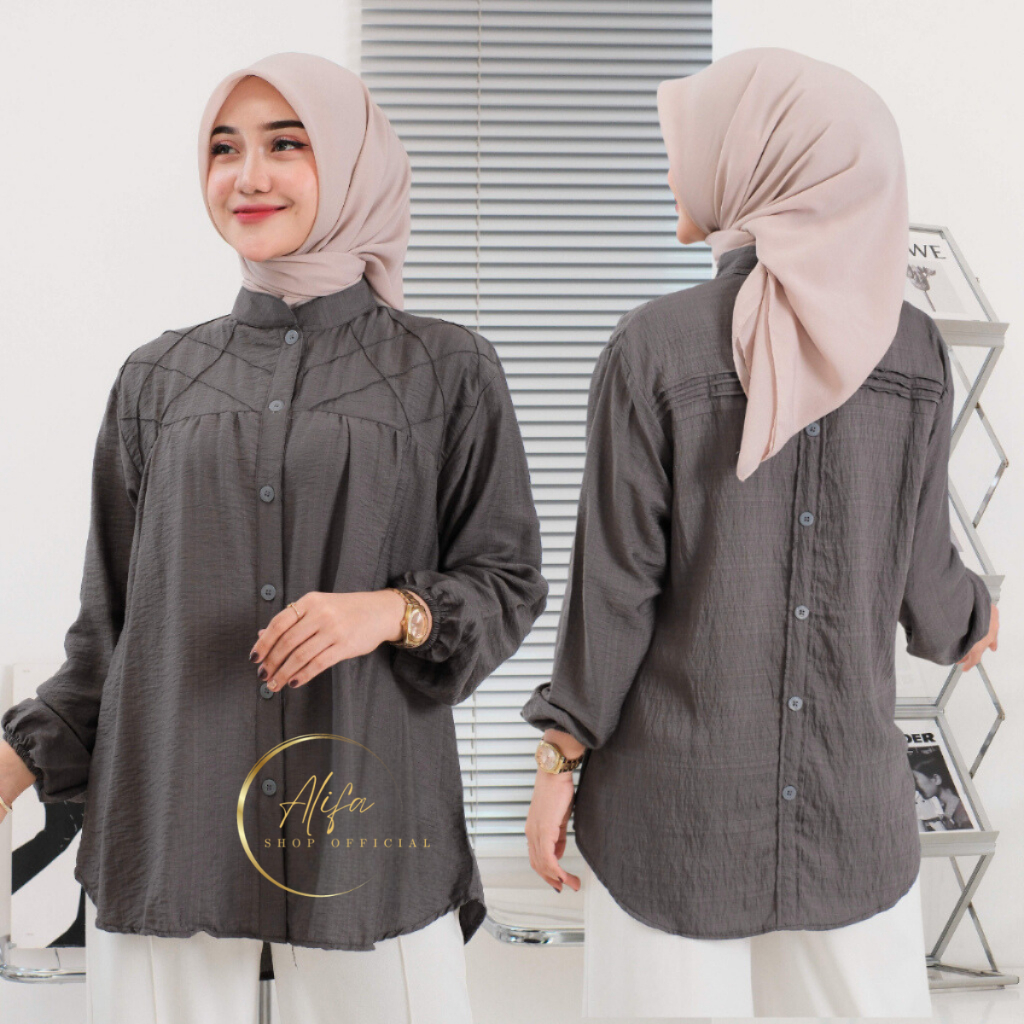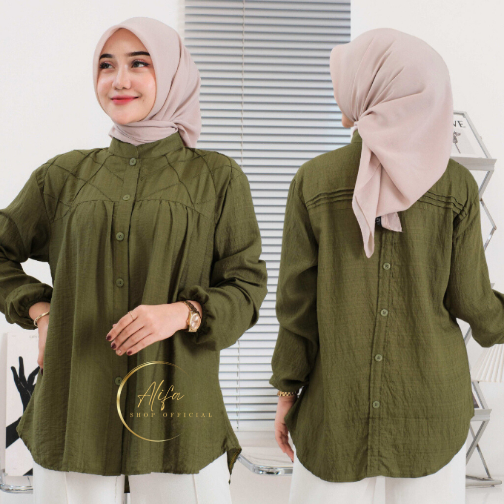 (Gratis Ongkir) Laura Shirt Atasan Kemeja Wanita Oversize Polo Linen LD 120