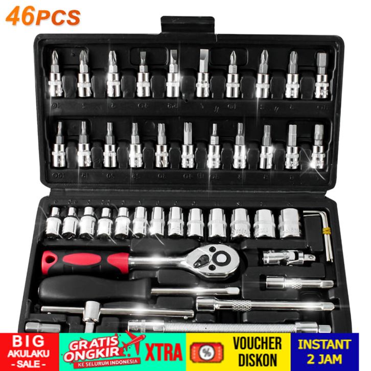 Allefix Kunci Socket Wrench Pas Socket Set 1/4 Repair Tool 46 pcs- G-10028 PERLENGKAPAN RUMAH TANGGA
