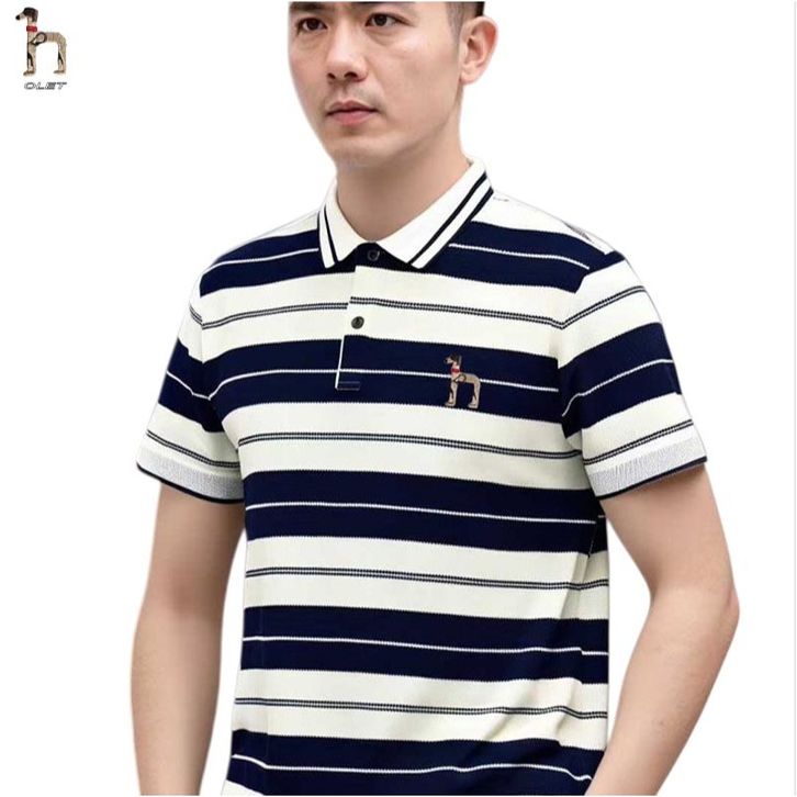 kaos pria bordir Kemeja POLO Shirt bergaris vertikal Olet
