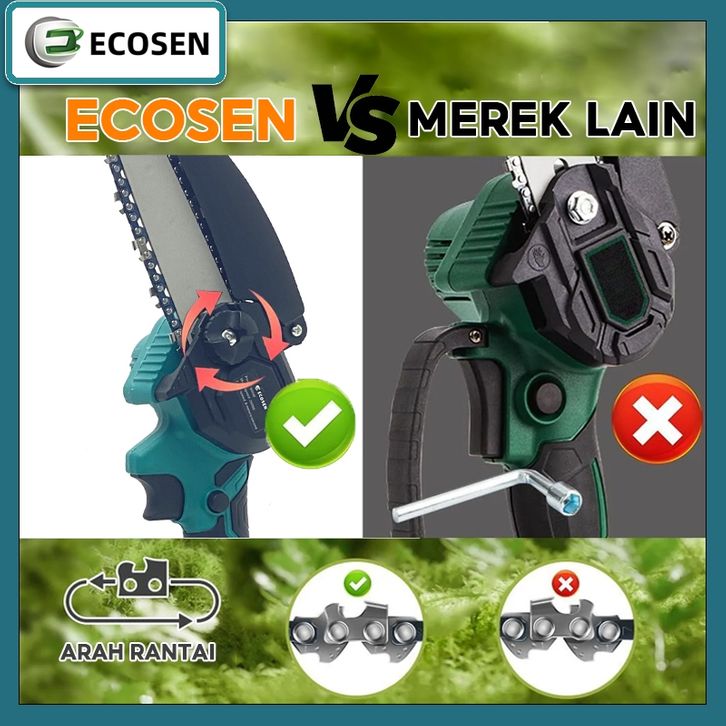 ECOSEN Mini Chainsaw 4/6/8Inch Cordless Chainsaw Gergaji Listrik Rantai Elektrik Mini Portable Handheld Chain Saw