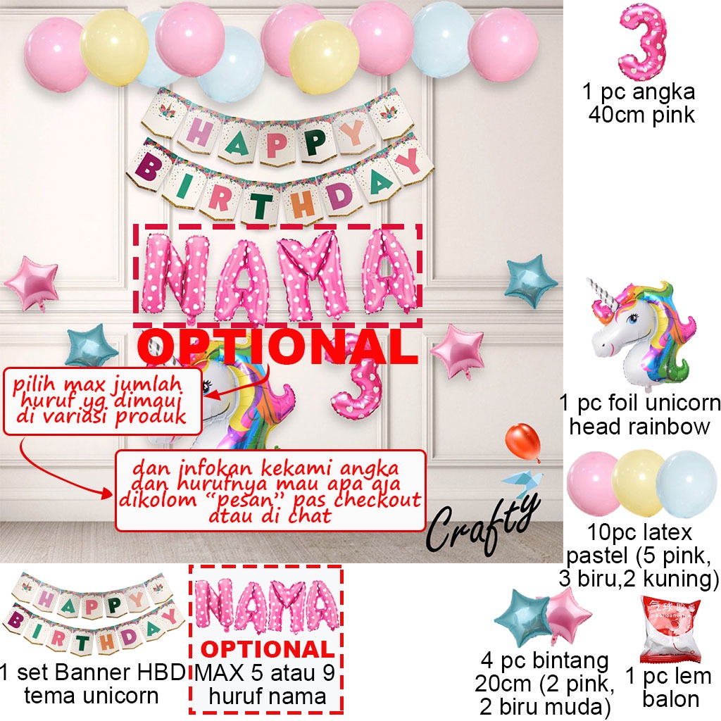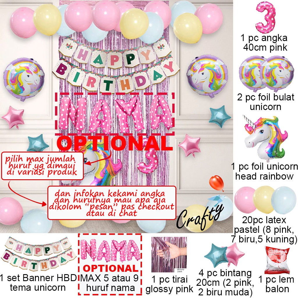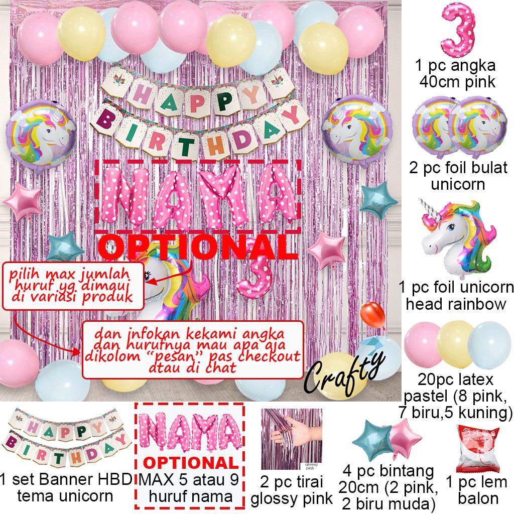 [PAKET] Balon Dekorasi Ulang Tahun Anak BANNER UNICORN PINK CURTAIN Hiasan Pesta
