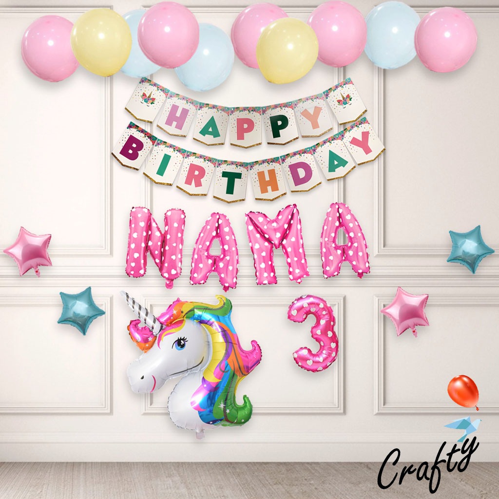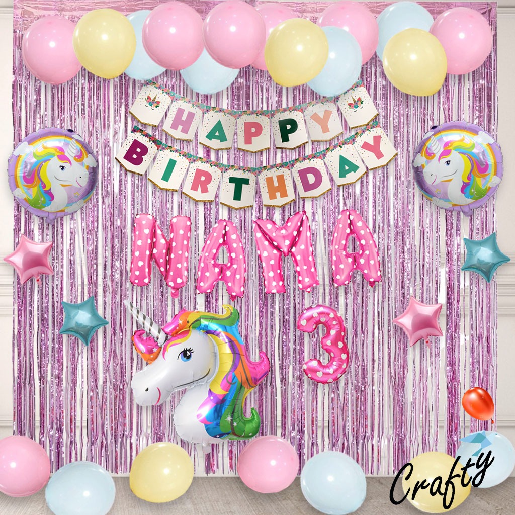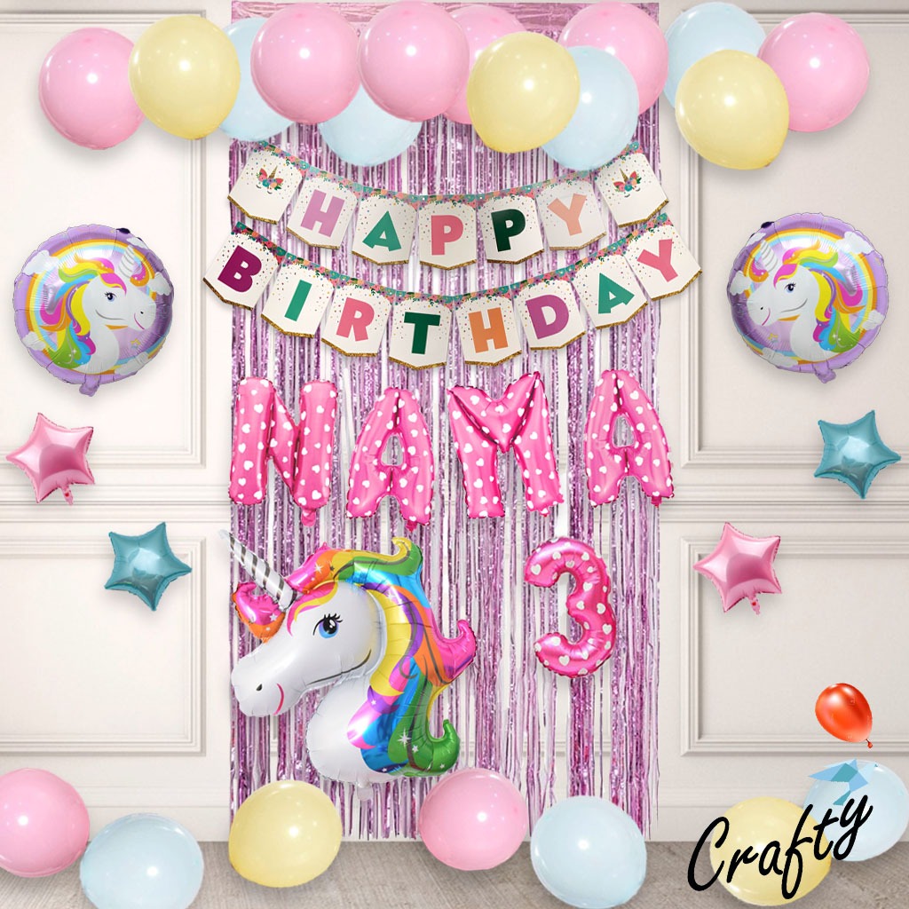 [PAKET] Balon Dekorasi Ulang Tahun Anak BANNER UNICORN PINK CURTAIN Hiasan Pesta