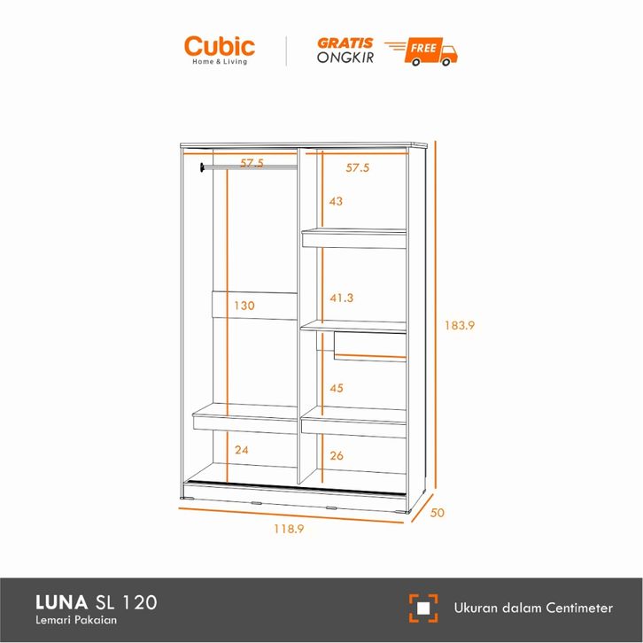 Cubic Lemari Pakaian Sliding Minimalis Wardrobe Baju LUNA SL 120