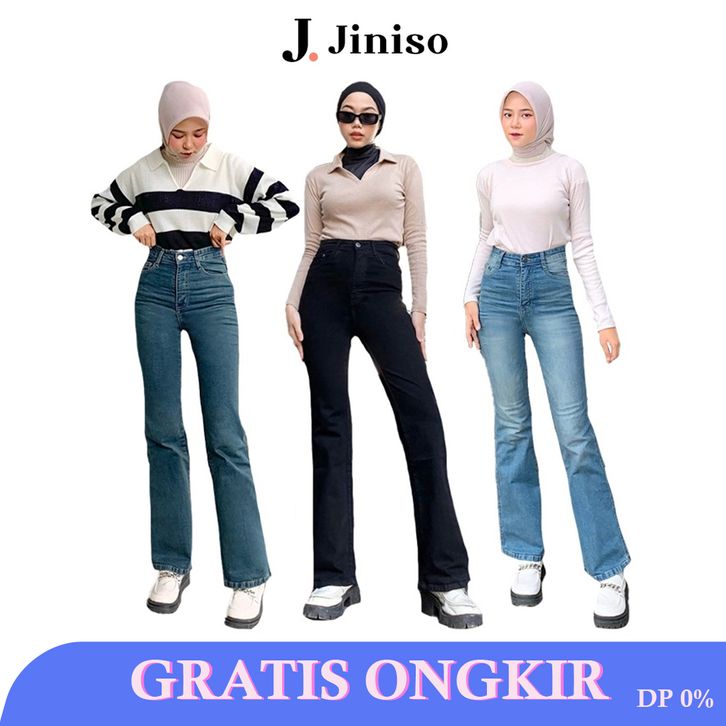 JINISO Celana Jeans Wanita High Waist Jeans Cutbray Stretch Pocket HANGOUT Celana Jeans Cewek Jumbo HW