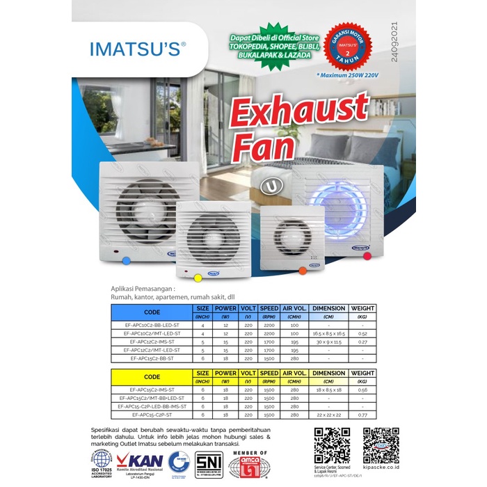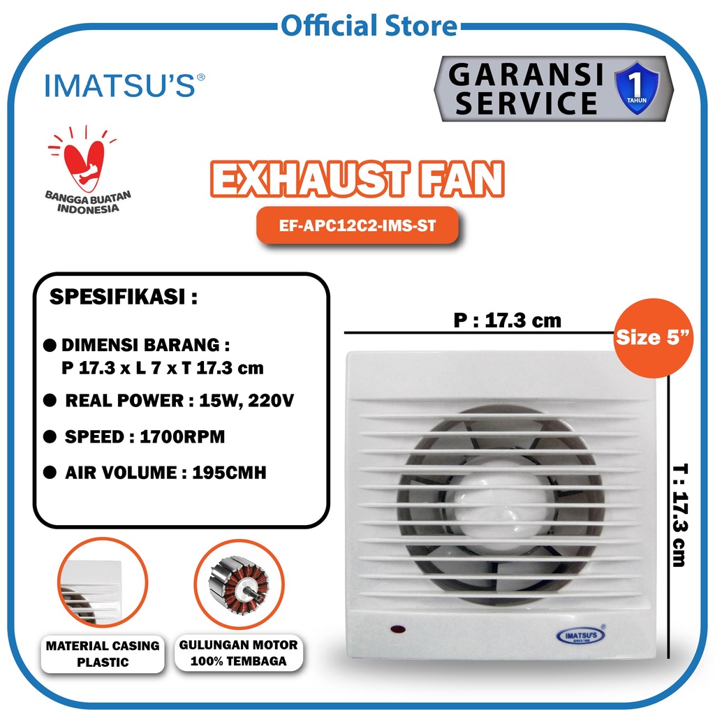 Kipas Plafon/ Exhaust Fan Plafon 5 INCH/Exhaust Fan Imatsu APC12C2 Without LED 5 Inch