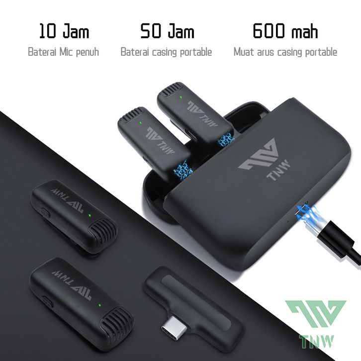 TNW-X9 WIRELESS DUAL LAVALIER MICROPHONE PLUG & PLAY LAPEL MIC WITH CHARGING CASE MIKROFON FOR TIKTOK YOUTUBE FACEBOOK