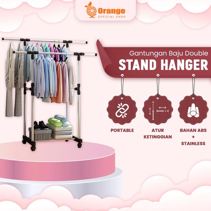 Jemuran atau Rak Stand Hanger Baju Serbaguna Dengan 4 Roda