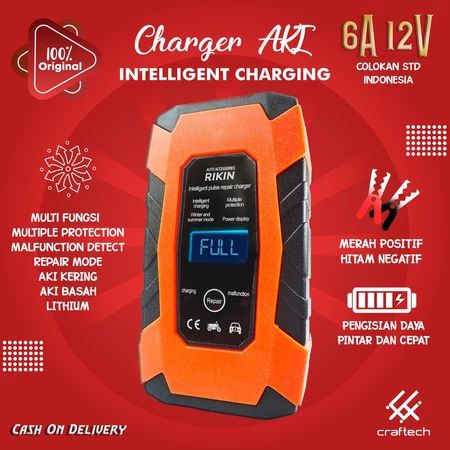 PREMIUM Charger Aki 12V 6A Cas Aki Mobil Motor Truck Smart Charging System