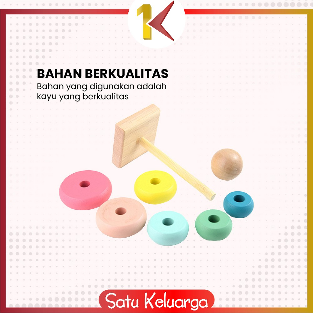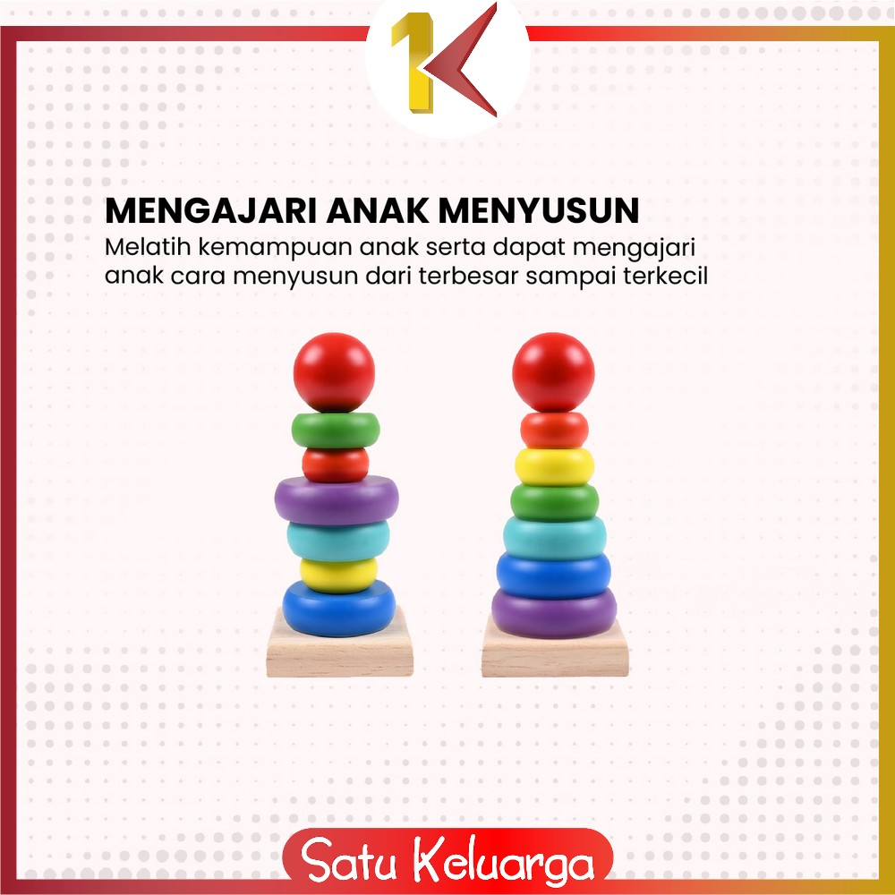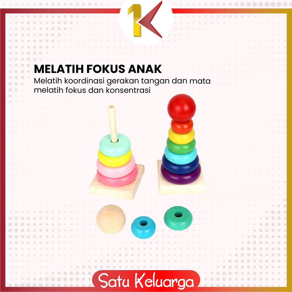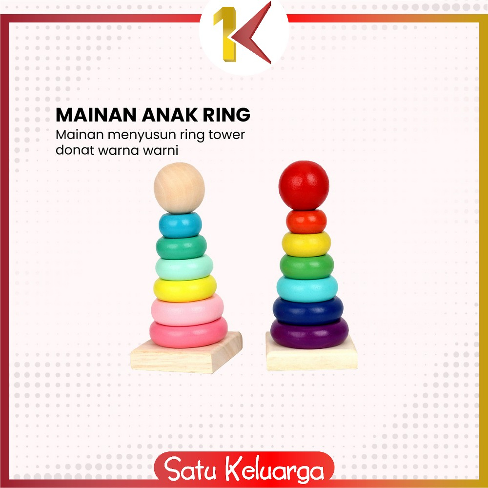SK-M329 MAINAN ANAK RING DONAT KAYU SUSUN RAINBOW UNISEX / MAINAN EDUKASI ANAK MENARA PELANGI