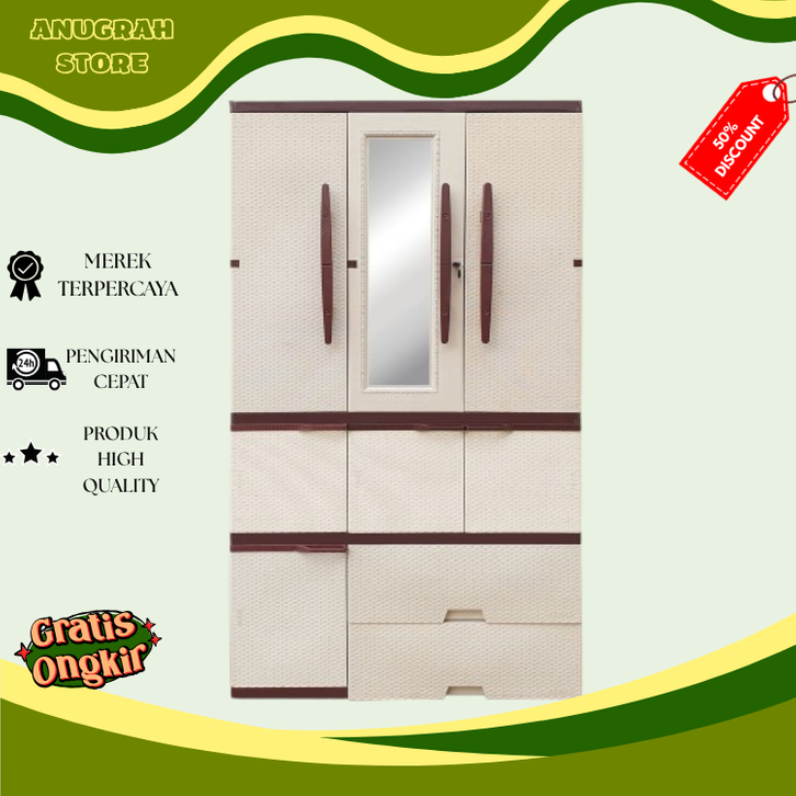 Lemari Plastik pakaian jumbo 3 pintu Terlaris Gratis ongkir