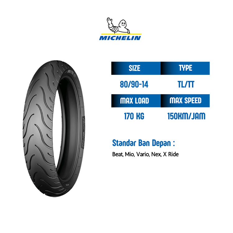 Ban Motor Michelin Pilot Street Ukuran 80/90 Ring 14 Tubeless All Matic Beat Mio Vario Scoopy Dll