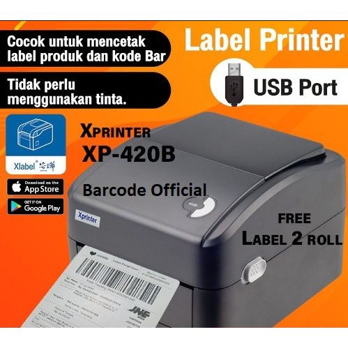100% ASLI PRINTER XPRINTER PRINTER BARCODE THERMAL - LABEL PRINTER XPRINTER XP-420B SIZE 110MM - A6 PRINTER