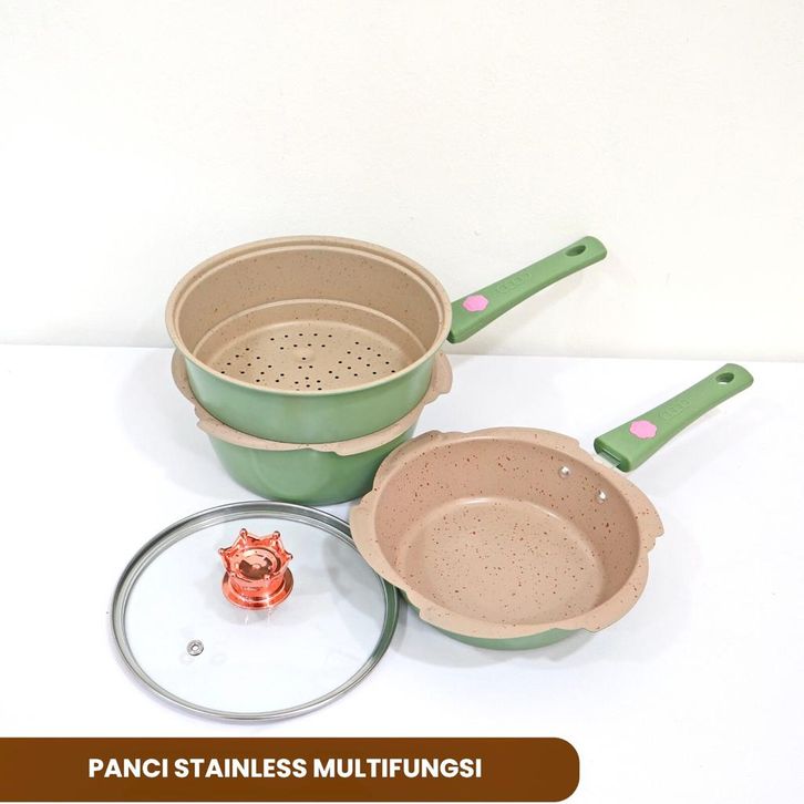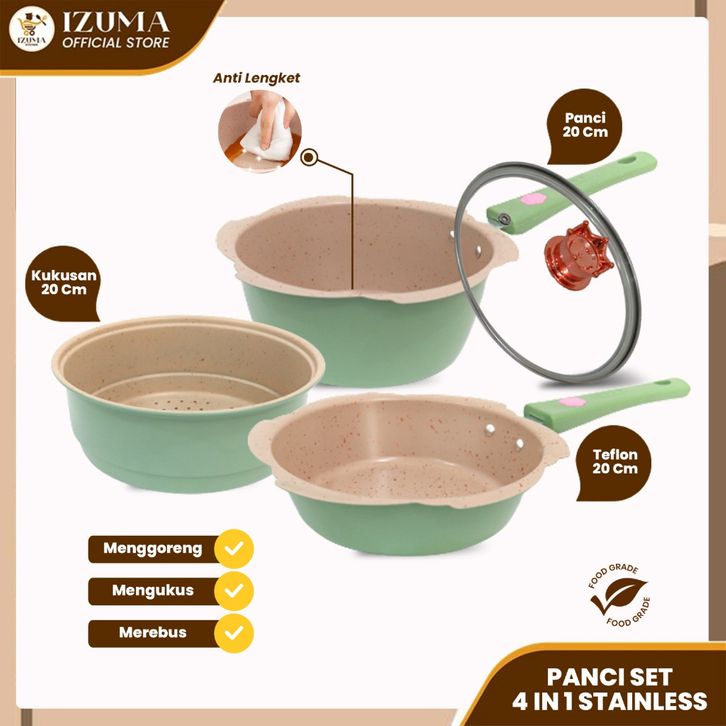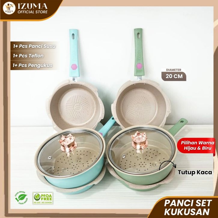 IZUMA Panci Mpasi Set Bayi 4 IN 1 / Kukusan9ranit Anti Lengket Wajan Keramik Food9rade AMAN MPASI