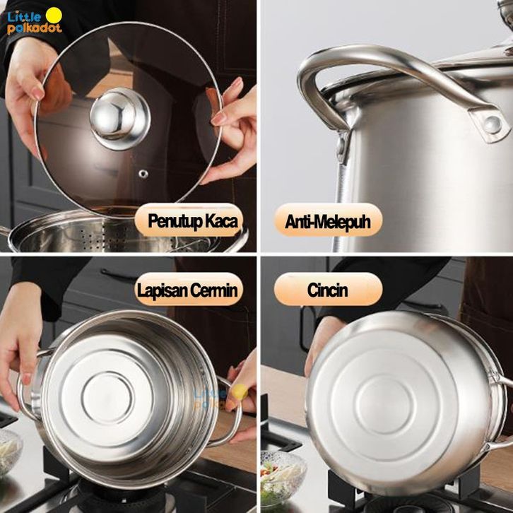 【Gratis Ongkir】9 Liter Panci Sup Stainless Panci serbaGAANa Kapasitas Tinggi Panci Aladin Panci Marsha High Pot Panci T