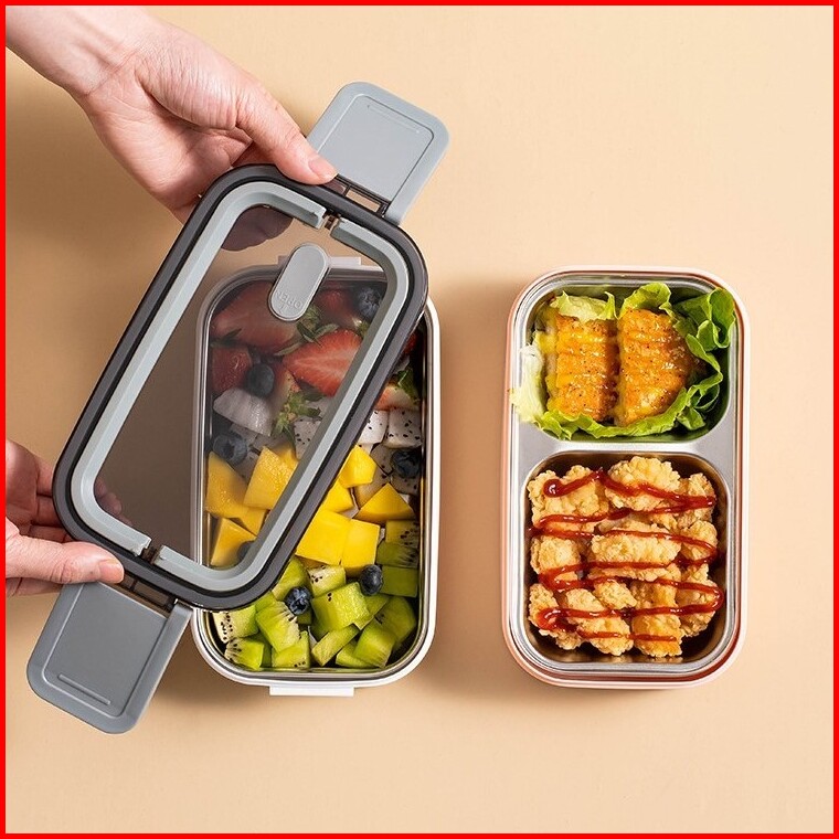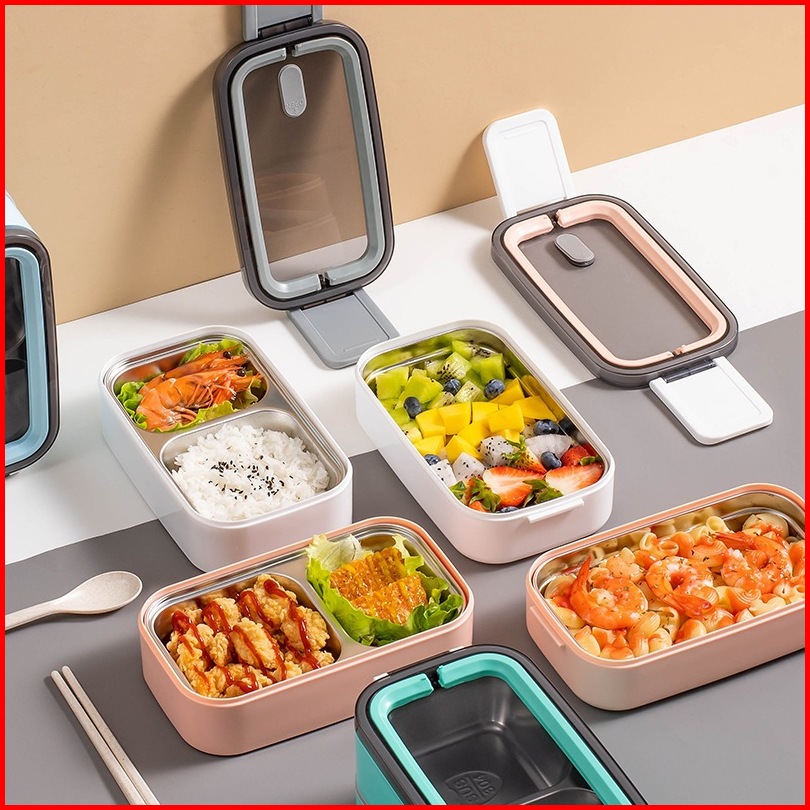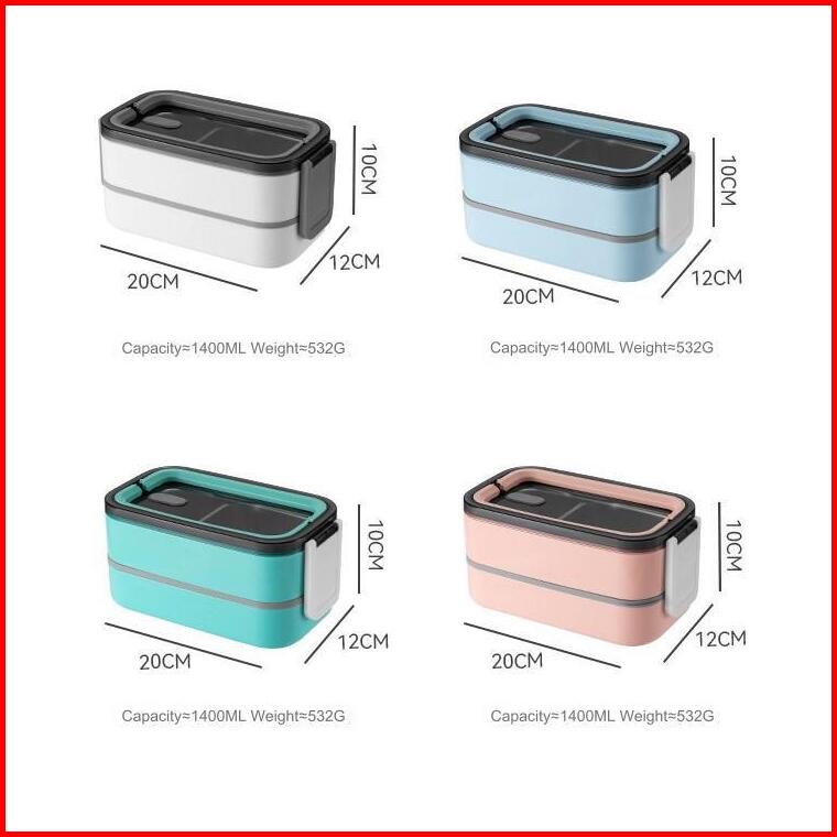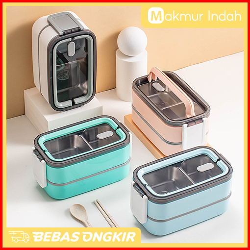 Kotak Makan Lunch Box Stainless Steel Double Layer 1400ml Anti Tumpah Tahan Panas