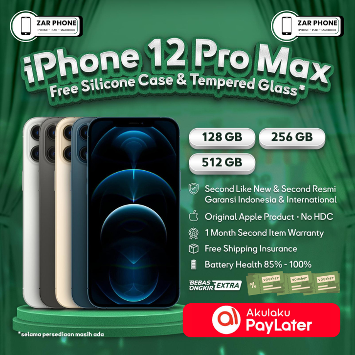 APPLE IPHONE 12 PRO MAX 128GB 256GB SECOND LIKE NEW BERGARANSI RESMI BEACUKAI TERPERCAYA ORIGINAL IBOX INTER IP 12 PRO