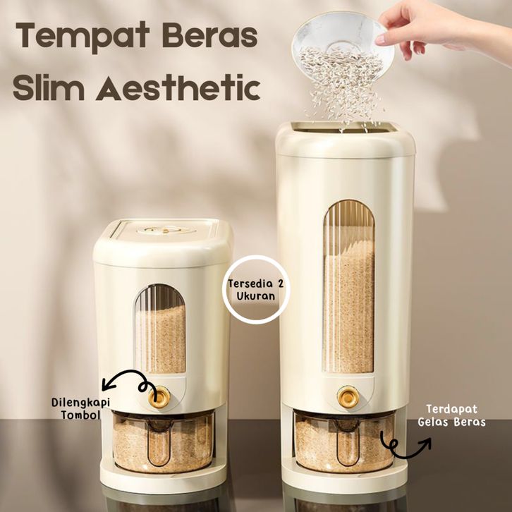 Alby Mart Dispenser Beras Estetik Slim Tempat Wadah Penyimpanan Beras Mewah 5 Kg & 10 Kg