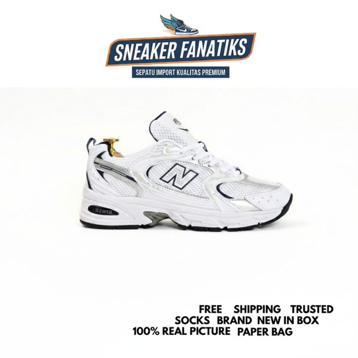 [Mall] Sepatu Sneaker Pria & Wanita New Balance 530 White Silver Navy Indigo BNIB Best Seller NB Import Premium