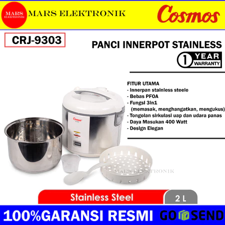 RICE COOKER COSMOS CRJ-9303 - POT STAINLESS STEEL - MAGIC COM / PENANAK NASI COSMOS CRJ 9303 - READY