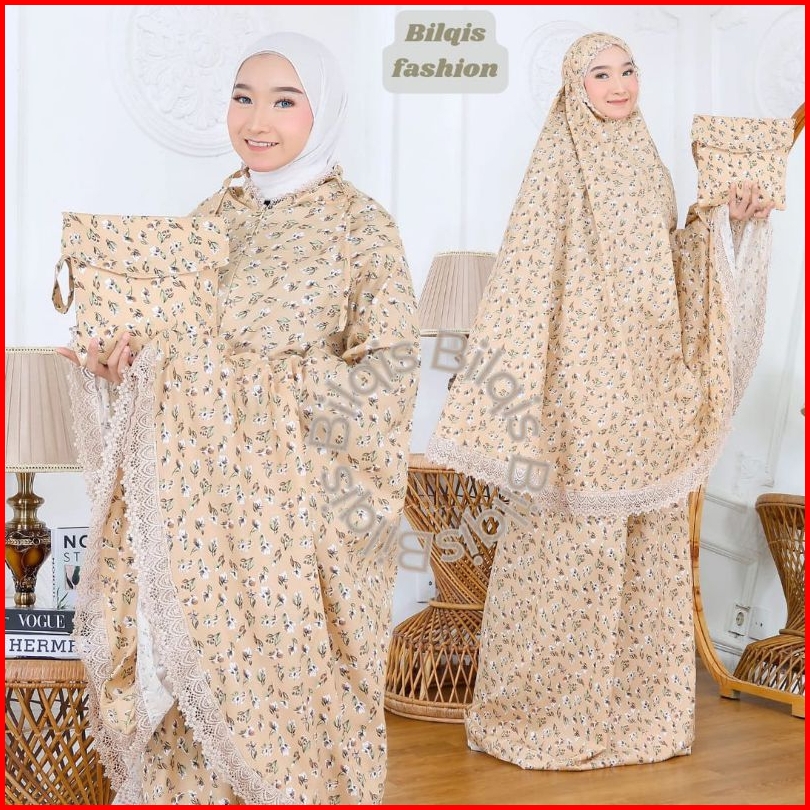 Mukena Dewasa Lubna 2in1 Resleting Katun Poly Mikro Printing