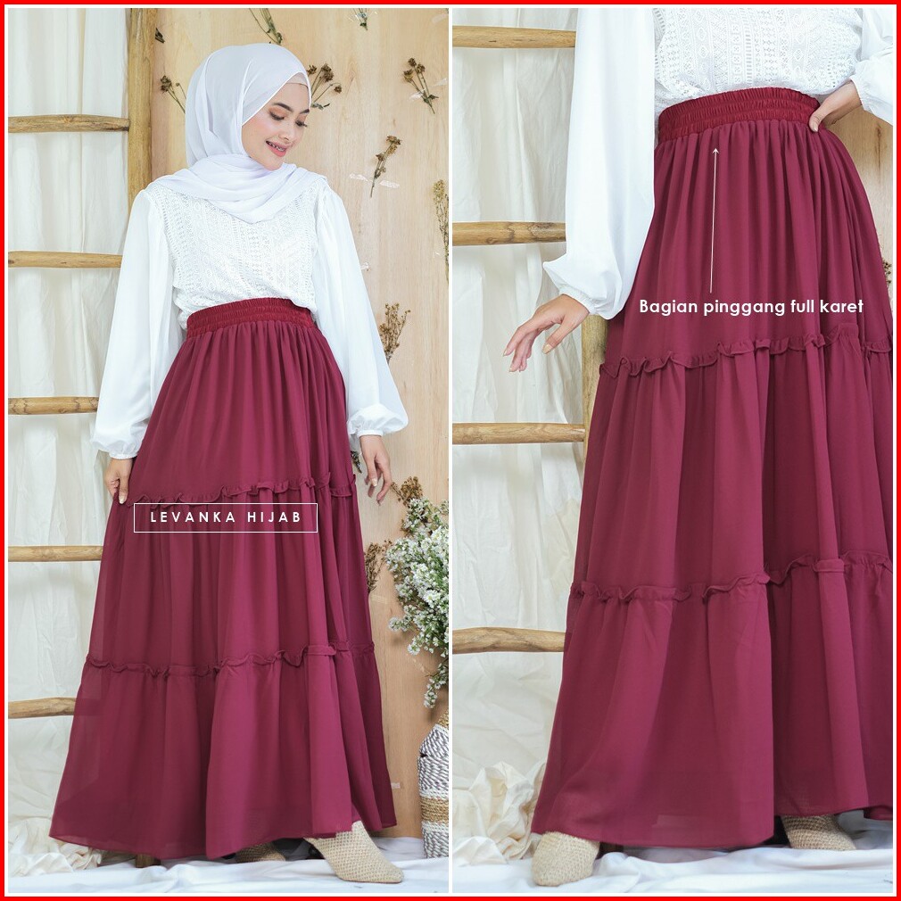 Sivenaz Skirt Rok Rempel Susun Panjang Wanita Payung Bahan Cerutty Ceruti Babydoll Umbrella Skirt