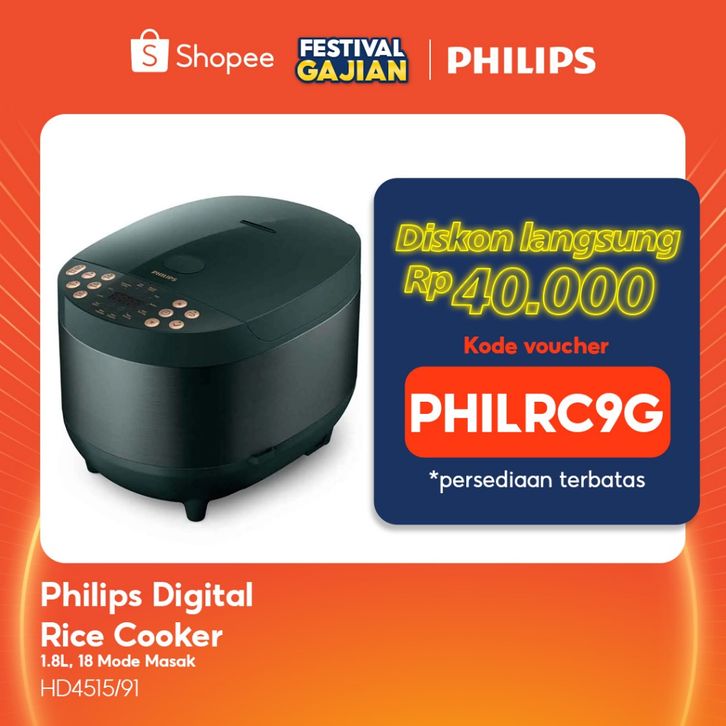 Philips Digital Rice Cooker / Magicom HD4515/91 1.8 L Lapisan Bakuhanseki Anti Lengket Anti Baret Paling Awet, hijau tu