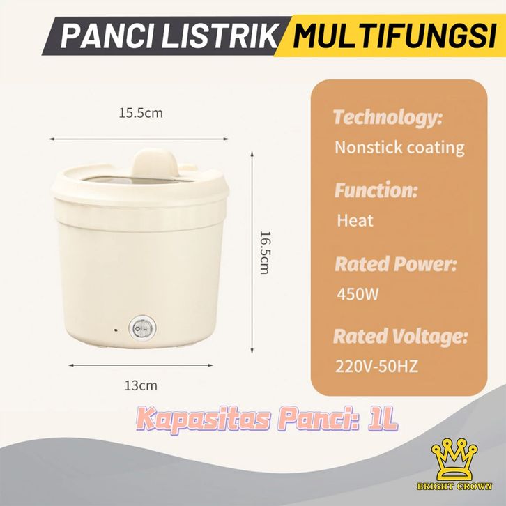 Bright Crown Mini Rice Cooker / Panci Listrik SerbaGAANa 1L Anti Lengket 450W / Electric Cooking Pot