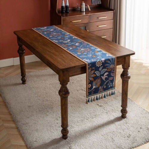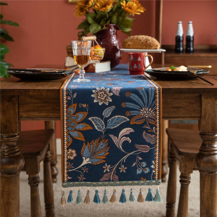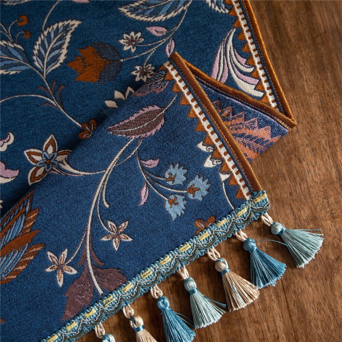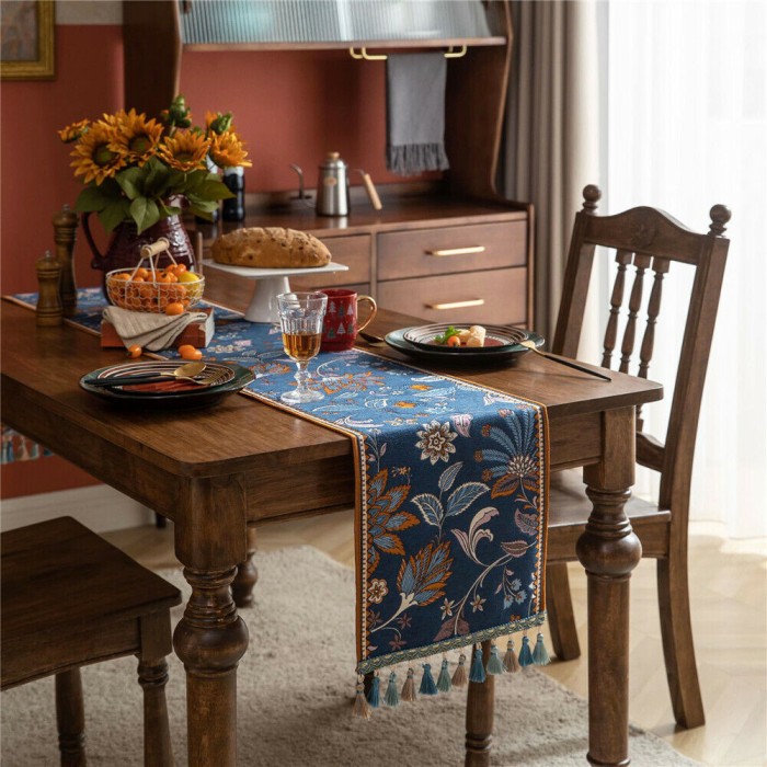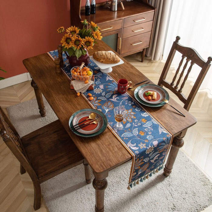 TABLE RUNNER TROPICAL TAPLAK MEJA MAKAN TAMU PREMIUM BLUE LEAF - 180 CM