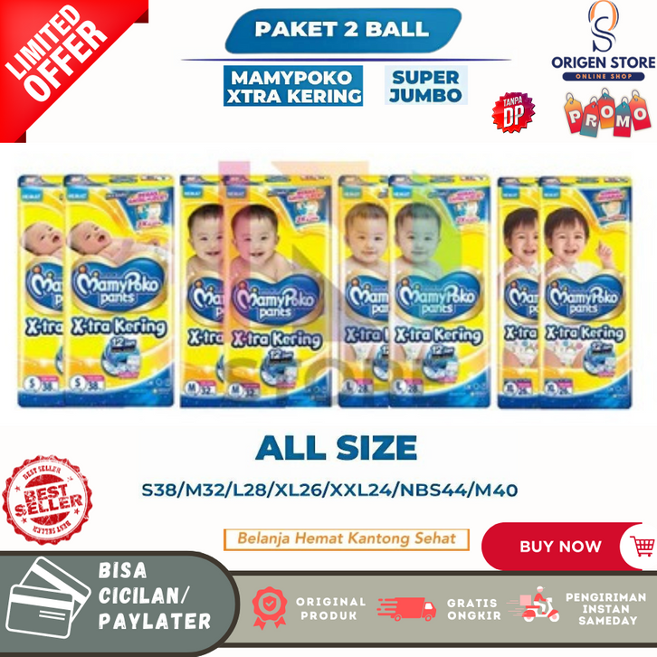 FREE ONGKIR-Paket 2 Ball MamyPoko Pants Xtra Kering S38/M32/L28/XL26/XXL24