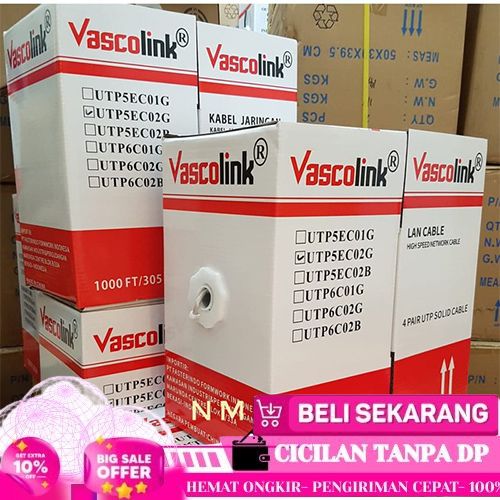 ASLI KABEL LAN 305 METER UTP CAT5E VASCOLINK GREY POE SUPPORT