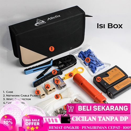 ASLI TOOL KIT NETWORK ALAT SERVIS JARINGAN INTERNET PAKET LENGKAP TANG CRIMPING LAN TESTER RJ45 FREE BAG OB-10X1