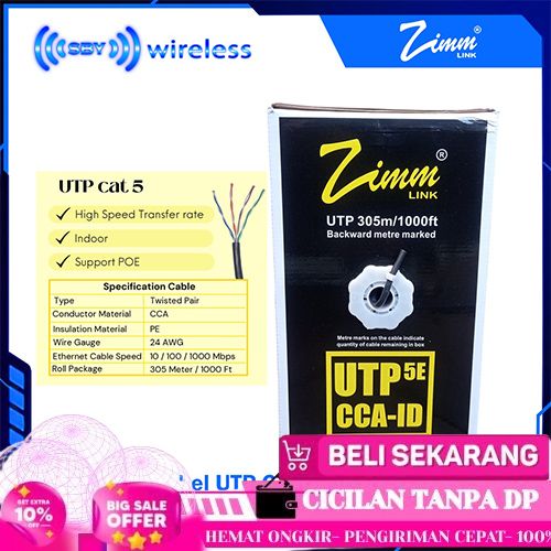 ASLI KABEL UTP CAT5E ZIMMLINK INDOOR BLACK - CCA ID ZIMM LINK HITAM
