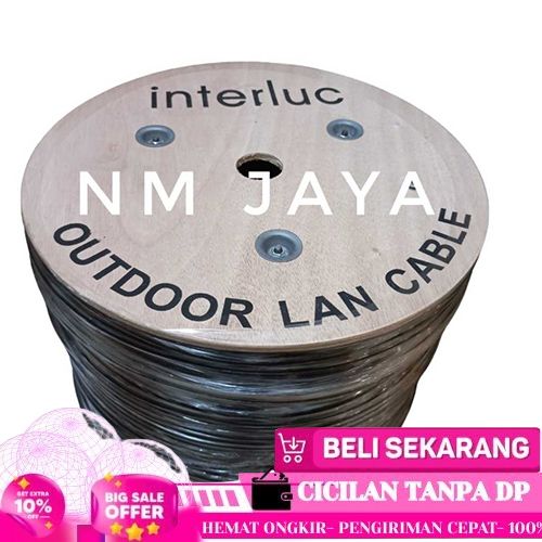 ASLI KABEL LAN DOUBLE JACKET OUTDOOR STP CAT 5E INTERLUC 305 METER HITAM