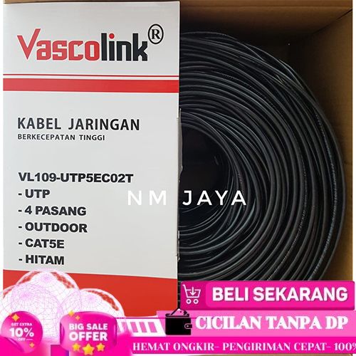 ASLI KABEL LAN OUTDOOR UTP CAT5E CAT 5E OUTDOOR VASCOLINK 305 METER WARNA HITAM