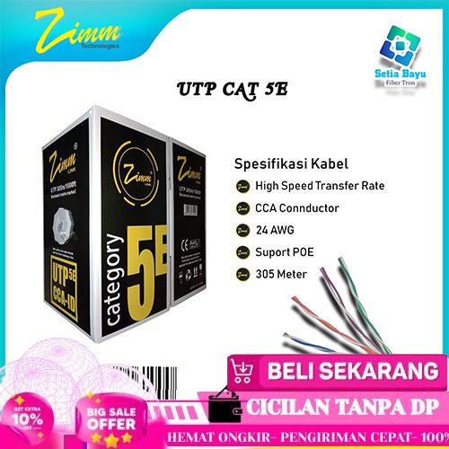 ASLI KABEL LAN CAT5E ZIMMLINK CCA 1 ROLL 305 METER KABEL UTP CAT 5E 305M LAN CABLE CAT5E