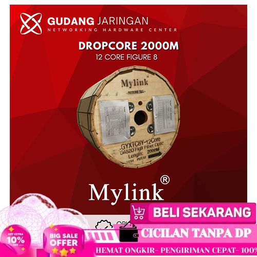 ASLI MYLINK KABEL FTTH KU MINI FIG8 CABLE 12 CORE 2000METER G652D OD 4.0×7.0MM, 7×0.33MM MU-LINK