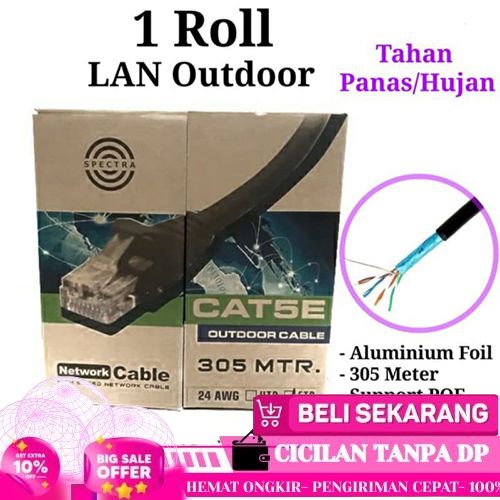 ASLI KABEL LAN UTP STP FTP SPECTRA CAT5E CAT6 INDOOR OUTDOOR GIGABIT 1 DUS BOX ROLL 305 METER
