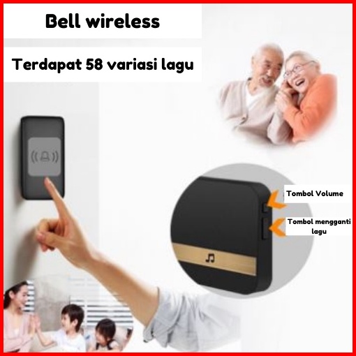 Bel Rumah Wireless Door Bell Pintu Doorbell Waterproof Type B