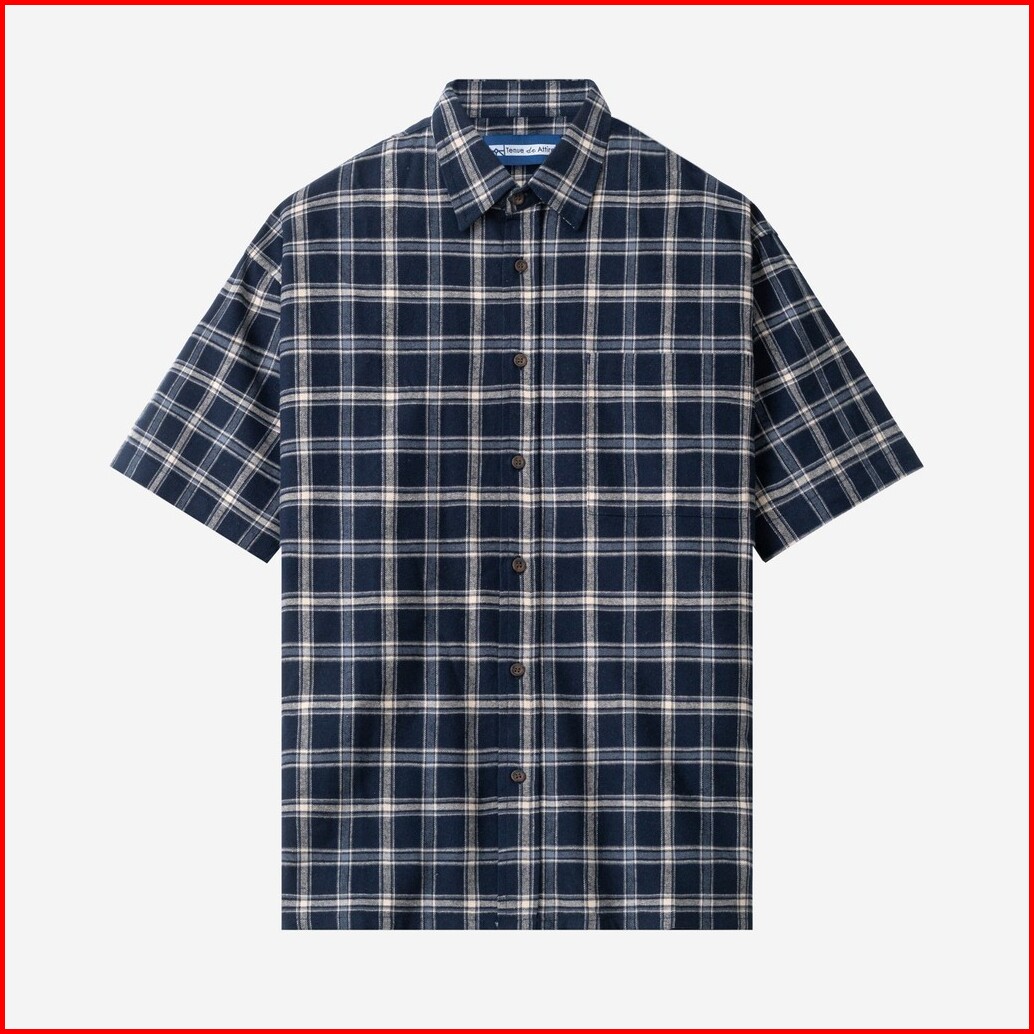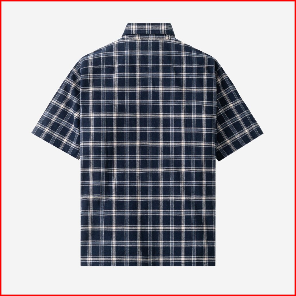 Kemeja Flannel - College Days Flannel Short Sleeve - Navy Grey