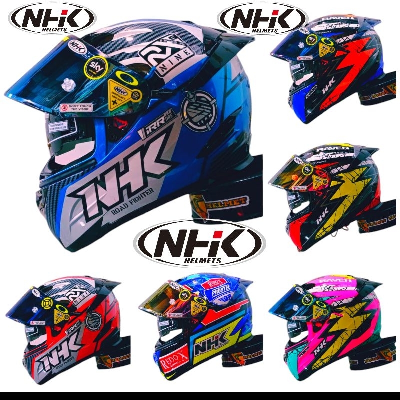 HELM FULL FACE NHK RX9 MOTIF RACER BLACK GREY BLUE PAKET GANTENG 100 PERSEN ORIGINAL SNI