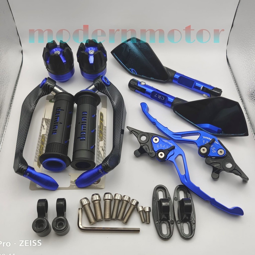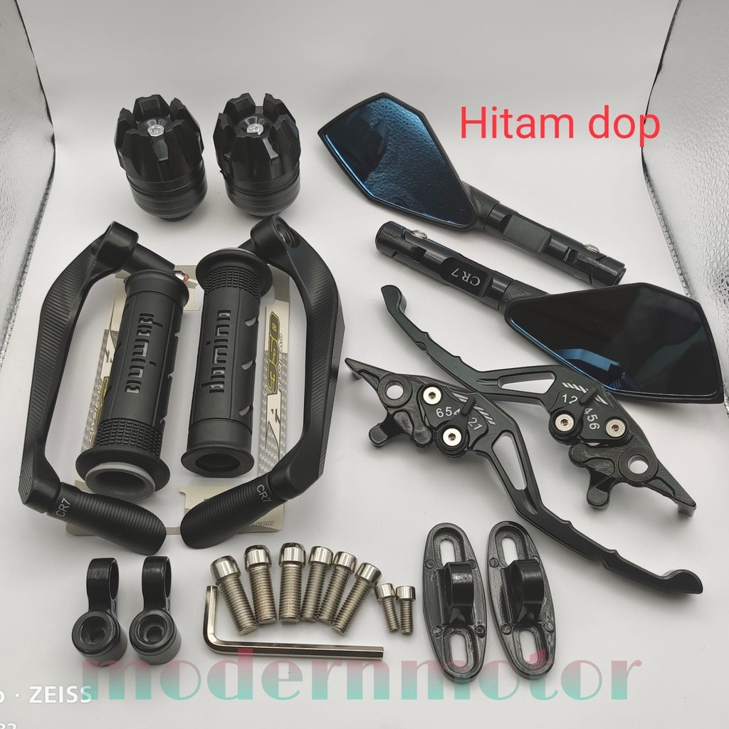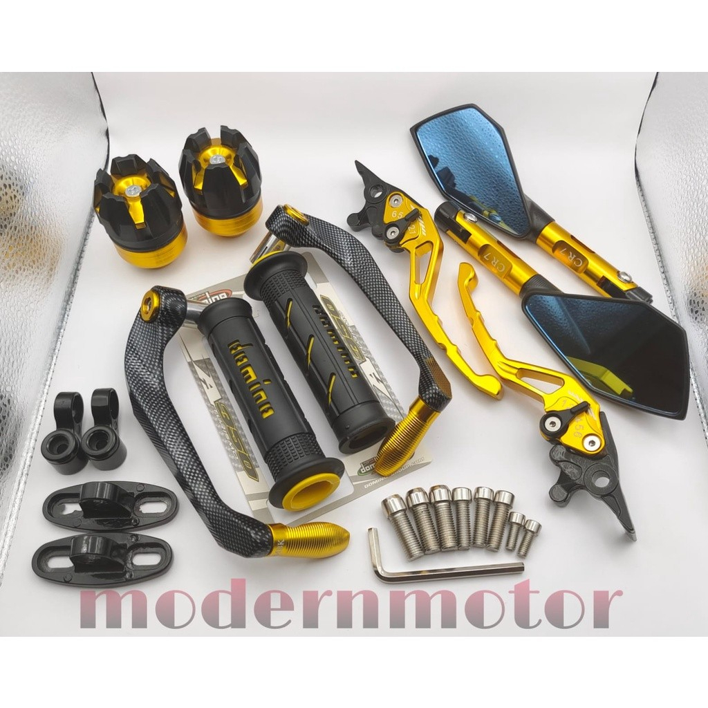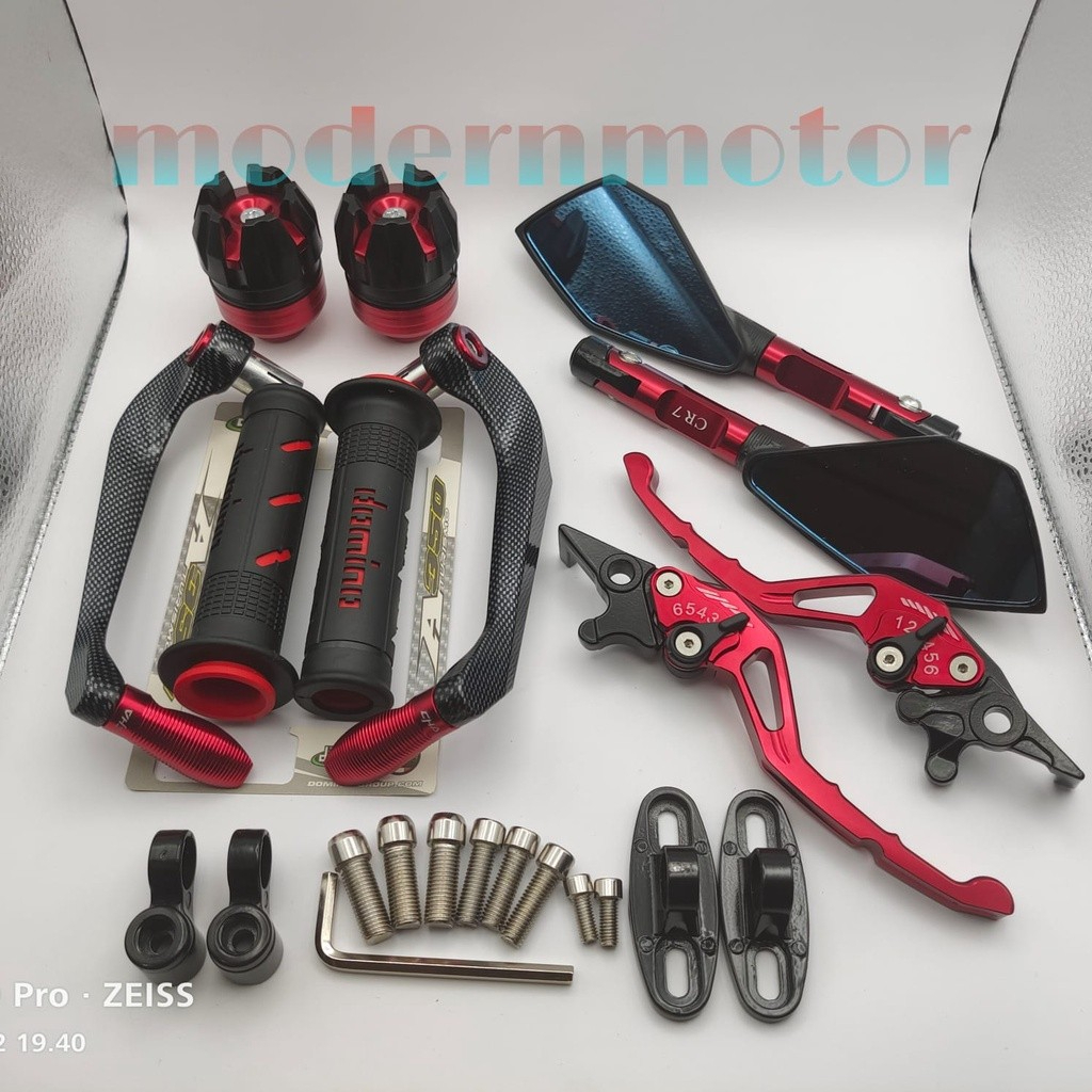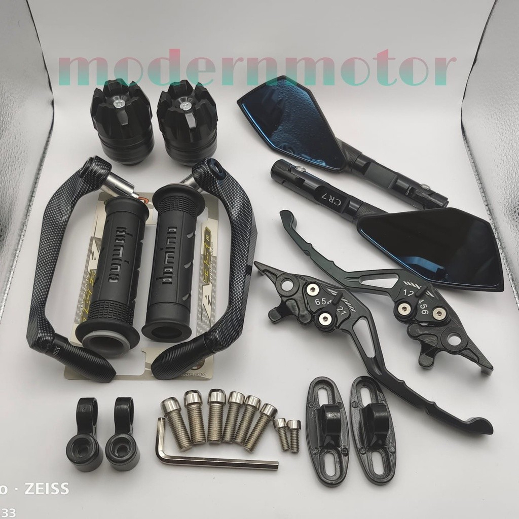 [PAKET 5in1] Spion Variasi V2+Proguard Carbon Sabit+Handle CNC+Grip domino+Jalu As D-Tracker KLX CRF Ninja CBR Matic