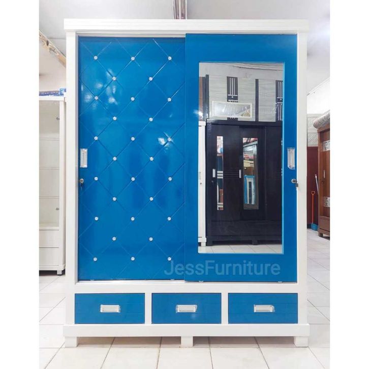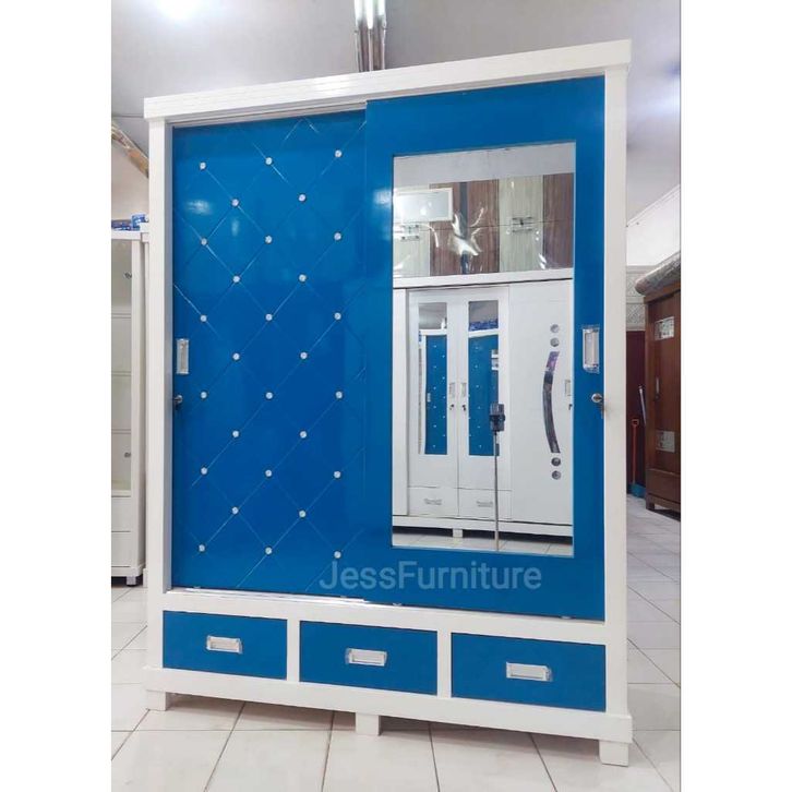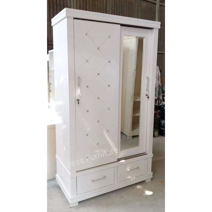 TERMURAH Lemari Baju 2 Pintu JUMBO Sliding Diamond Putih Lemari Baju Geser