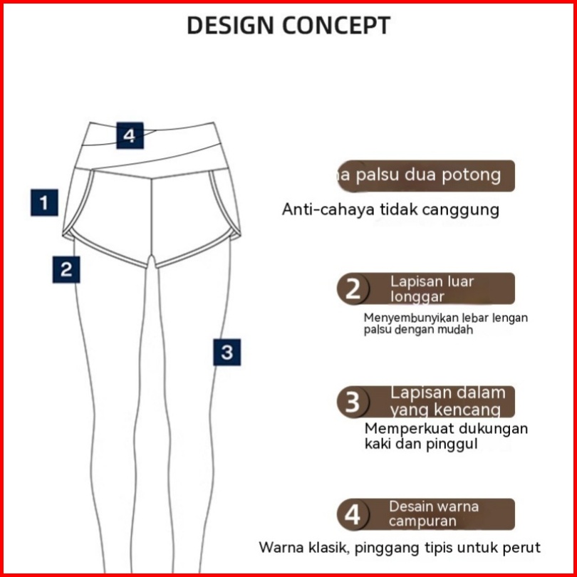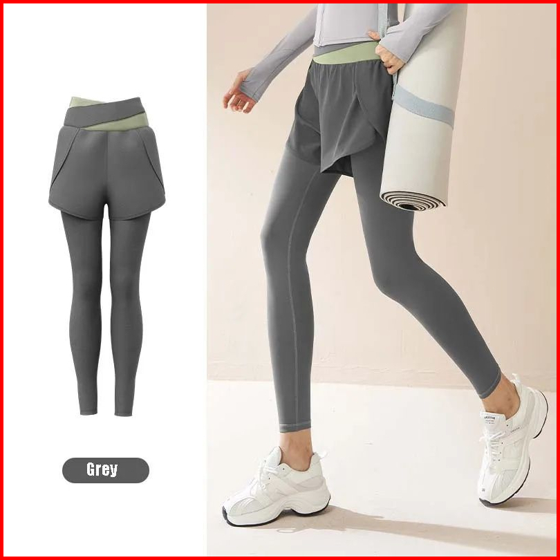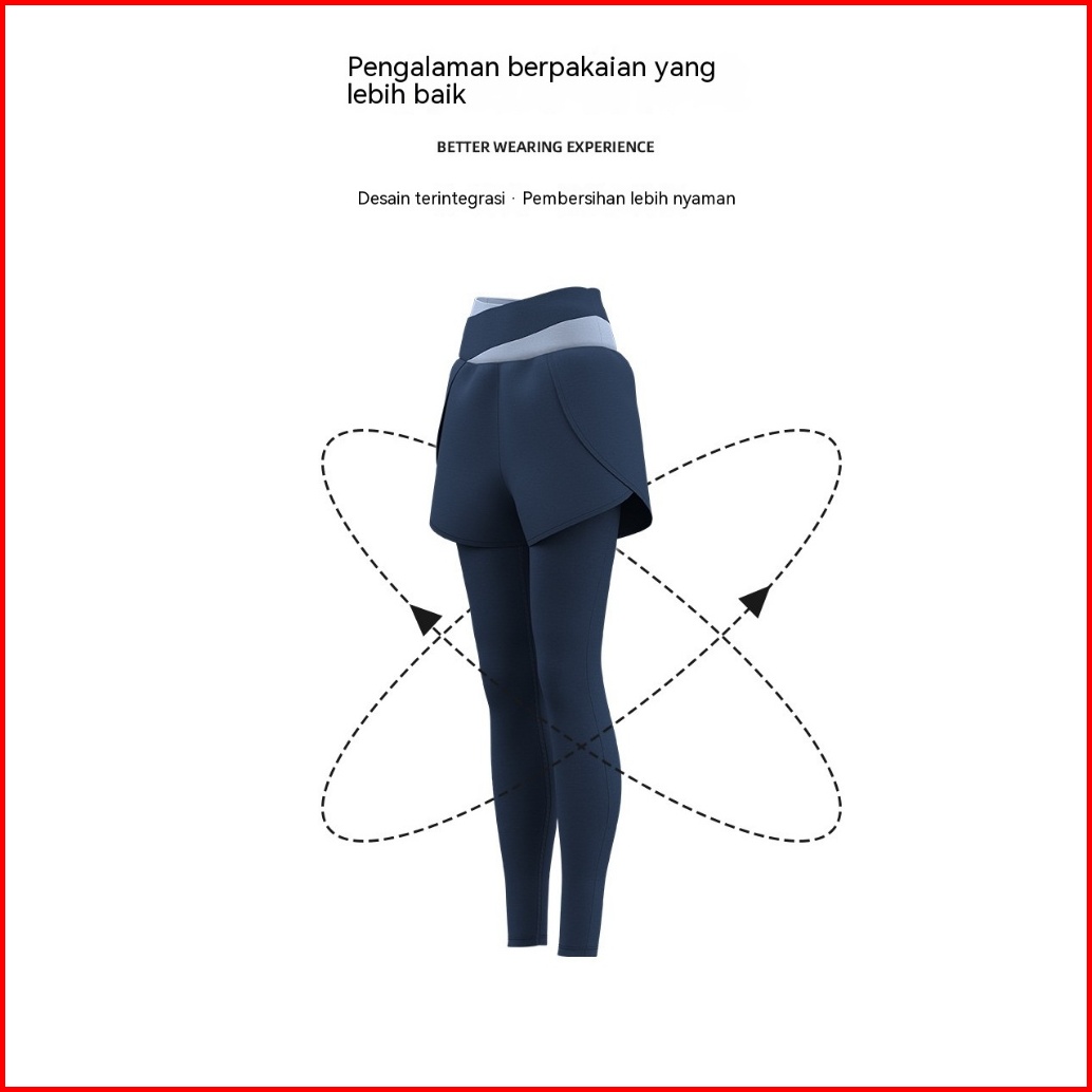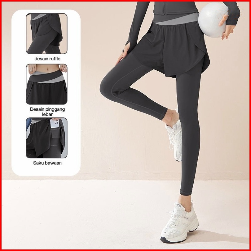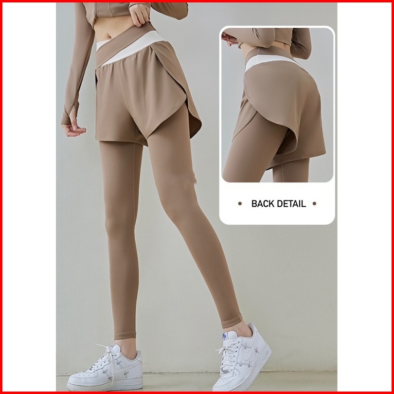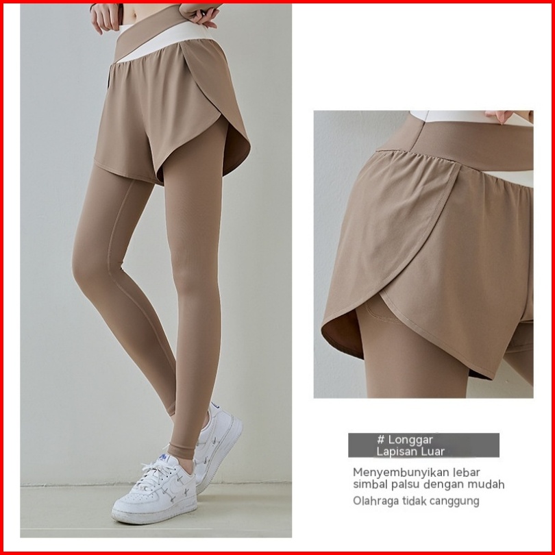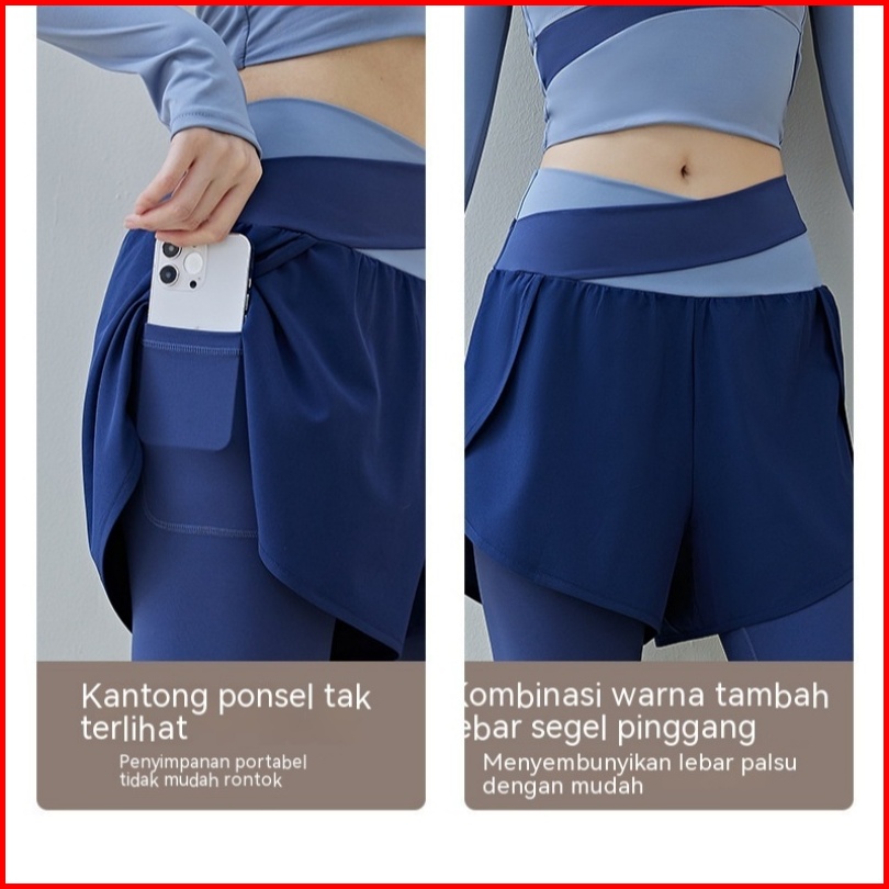 High Waist Legging Olahraga Celana Saku Olahragawanita Dwi Lapisan 2 In 1 Senam Yoga Gym Running