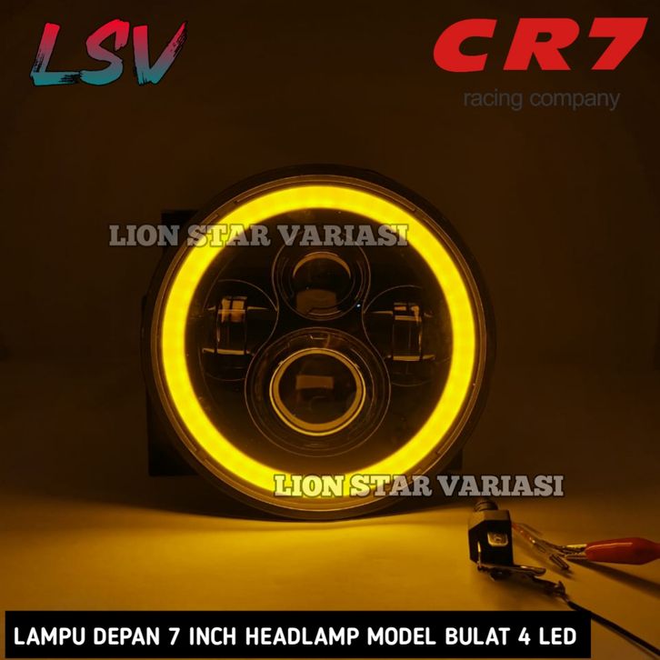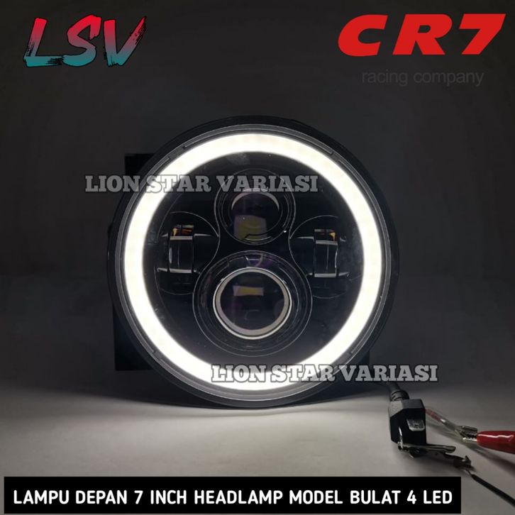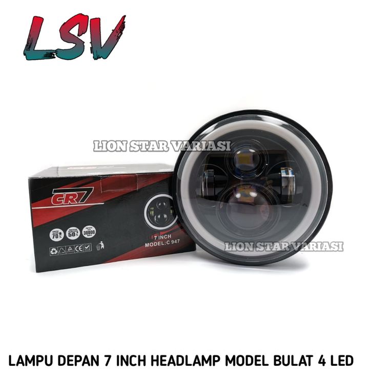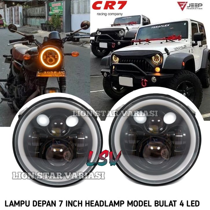 Lampu Depan 7 Inch Model Bulat 4 Mata LED Headlamp Utama 7 inci Foglamp Motor Mobil Harley Jeep Waterproof Universal