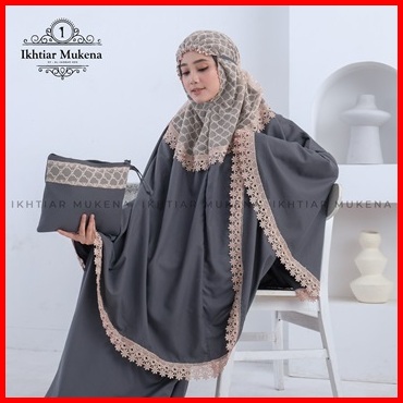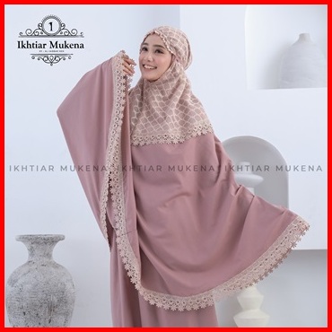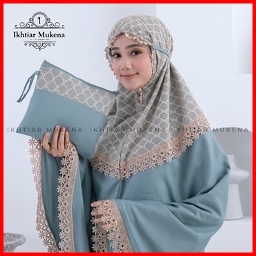 Ikhtiar - Mukena Dewasa Katun Premium Malexa Series Brukat Tile Renda Mewah