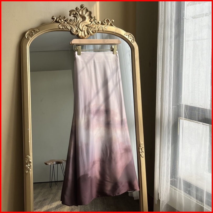 Fwdaily - Fairy Skirt Rok Silk Motif Midi Maxi Premium Casual Rok Wanita