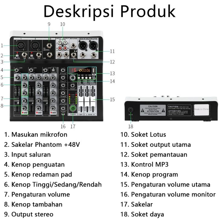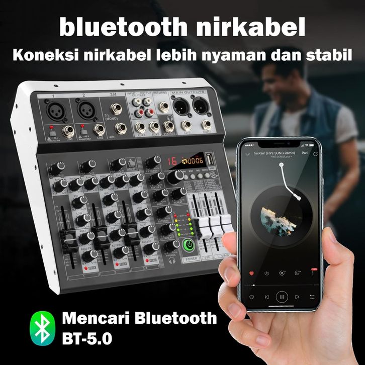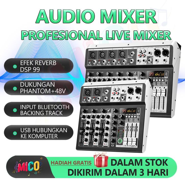 Mixer 4 Channel Audio Mixer 99-Bit DSP Effect USB Audio Interface Effects mendukung pemutaran Bluetooth USB MP3 for Home