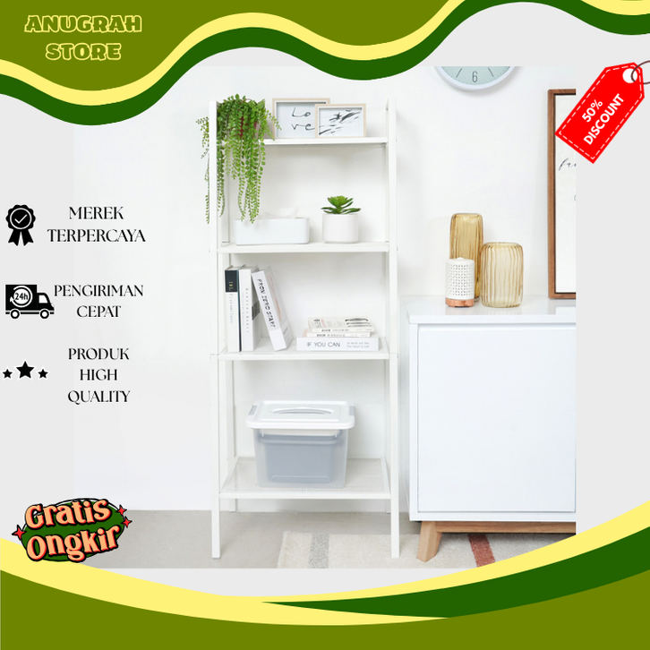 Rak Besi 4 Tingkat - Putih Storage Rack Metal Tempat Penyimpanan Serbaguna Rak Pajangan Barang Dokumen , TERMURAH