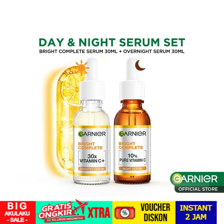 GRATIS ONGKIR Paket Skincare Garnier Bright Complete Vitamin C Day & Night Serum Kit – Paket Serum Pagi & Malam dengan